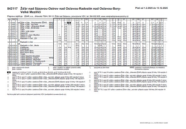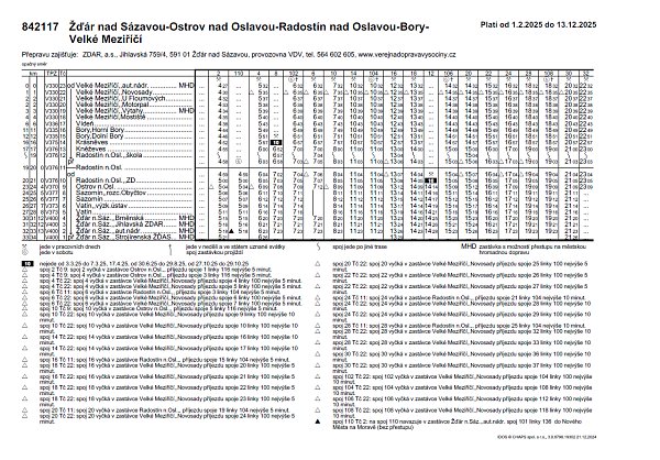 Linka 117 VM-Bory-Radostín-Žďár: Linkový vývěsný jízdní řád veřejné linkové dopravy