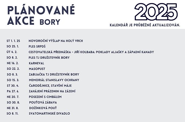 Od 1. února 2025 dochází k významnému posílení autobusových spojů na trase Velké Meziříčí – Bory – Žďár nad Sázavou v obou směrech. Nově v Borech zastaví více než 10 autobusů denně ve všední dny na zastávce v Horních i Dolních Borech!