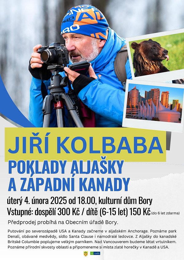 Jiří Kolbaba vás vezme na fascinující cestu po severozápadě USA a Kanady. Společně prozkoumáte divokou Aljašku, obdivuhodný národní park Denali, majestátní ledovce i Vancouver z ptačí perspektivy. Přednáška slibuje poutavé vyprávění, jedinečné fotografie a nezapomenutelnou atmosféru.