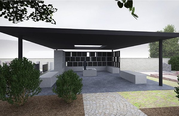 Korpus kolumbária bude vytvořen z mrákotínské šedé žuly a krycí dvířka z přírodního kamene s černošedým tečkováním.